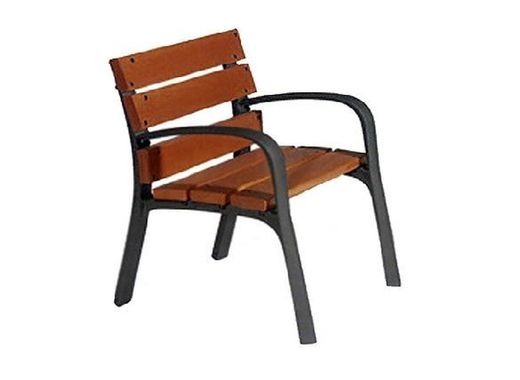 Cadira fabricada en fusta de bona qualitat, amb peus en fosa dúctil, acabats amb pintura oxiró al forn. Gràcies al tractat de la fusta, aquesta cadira pot resistir a la intempèrie sense cap mena de manteniment. Disponible en diverses opcions d'acabats com: fusta de Guinea i fusta tècnica.