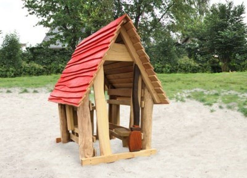 Caseta bruixa, model 7.03.01., tallada a mà i fabricat amb fusta de robínia. Aquesta caseta compleix les normes europees UNE-EN 1176 pel TÜV alemany - Product Service.