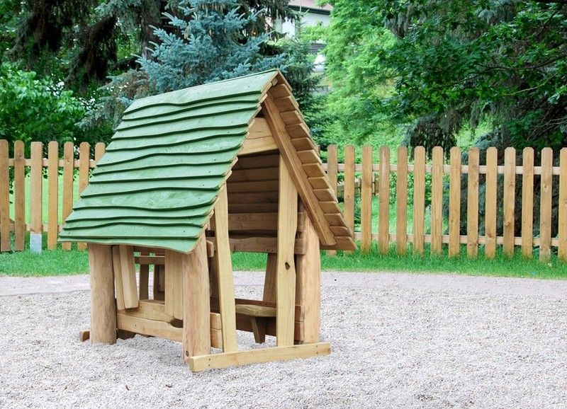 - Estructura: Caseta composta amb teulada a 2 aigües, porta i 2 finestres amb seients a l'interior.