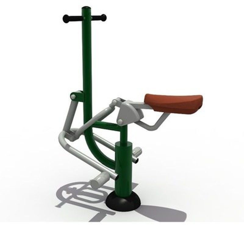- Material:Estructura d'acer pregalvanitzat acabat amb imprimació + esmalt polièster al forn de color gris i verd. Mecanismes formats per eixos galvanitzats i rodaments autolubricats. Seient de plàstic d'alta densitat de color vermell.