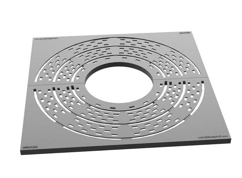 Escocell preparat per al creixement de l'arbre, fabricat totalment en fosa dúctil i acabats amb pintura oxiron al forn. L'obertura dels orificis no supera els 10mm d'acord amb l'ordre ministerial VIV/56172010. Gràcies al tractat, aquest escocell pot resistir a la intempèrie sense cap mena de manteniment. disponible en diversos diàmetres.