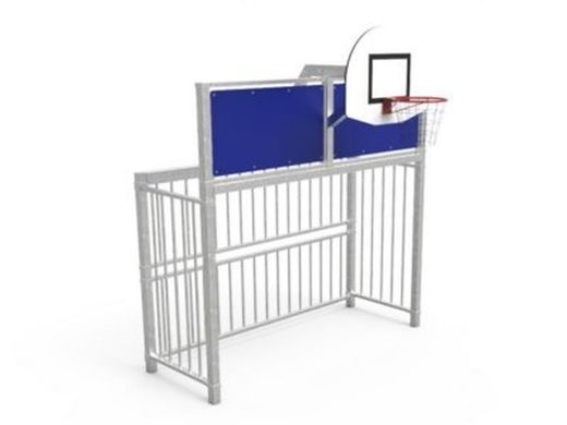 Frontó petit format per una estructura de porteria, 2 panells de polietilè (HDPE) i un cèrcol de bàsquet amb xarxa, ideal per jugar a futbol/handbol o bàsquet. Aquest equipament esportiu de gran qualitat, no requereix manteniment, és molt resistent, 100% reciclable i respecta el medi ambient.