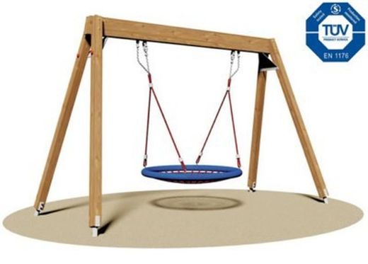 - Columpi de cor i niu fabricat amb cor que subjecten el gronxador. Reforçat amb cadena d'acer galvanitzada connectat a la biga amb un doblet en acer inoxidable.