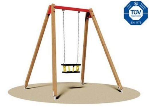 - Columpi: Seient pla de cautxú antilliscant amb nucli intern d'alumini i cadenes galvanitzades en calent amb pas de malla estret per evitar l'empressonament dels dits.