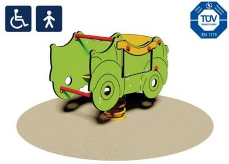 Joc de moll Green Car 1020, ideal per a nens amb mobilitat reduïda. Disposa d´una porta per facilitar l´accés. Joc infantil certificat de conformitat amb les normes europees EN 1176 pel TÜV alemany - Product Service.