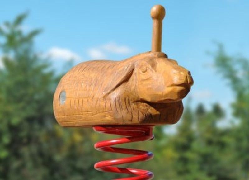Joc de moll amb forma d'Ovella, model 4.03.03, tallada a mà i fabricada amb fusta de robínia amb un moll d'acer envernissat al forn amb dispositiu antipinzament de dits. Aquest joc de moll compleix les normes europees EN 1176 pel TÜV alemany - Product Service.