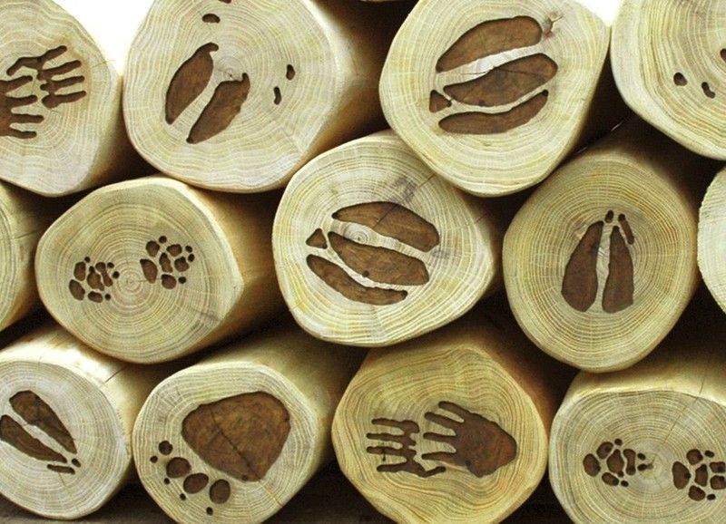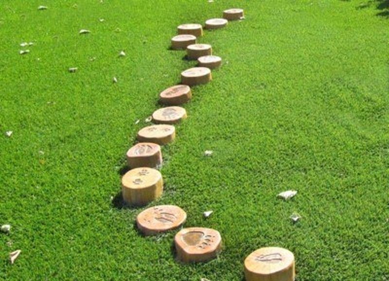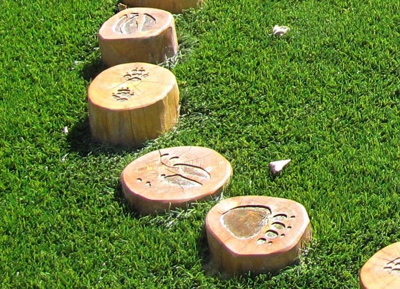 Joc d'educació PASSAREL·LA EMPREMTES 31.05.01.1. Tallat a mà i fabricat amb fusta de robínia. Aquest joc compleix les normes europees UNE-EN 1176 pel TÜV alemany - Product Service.