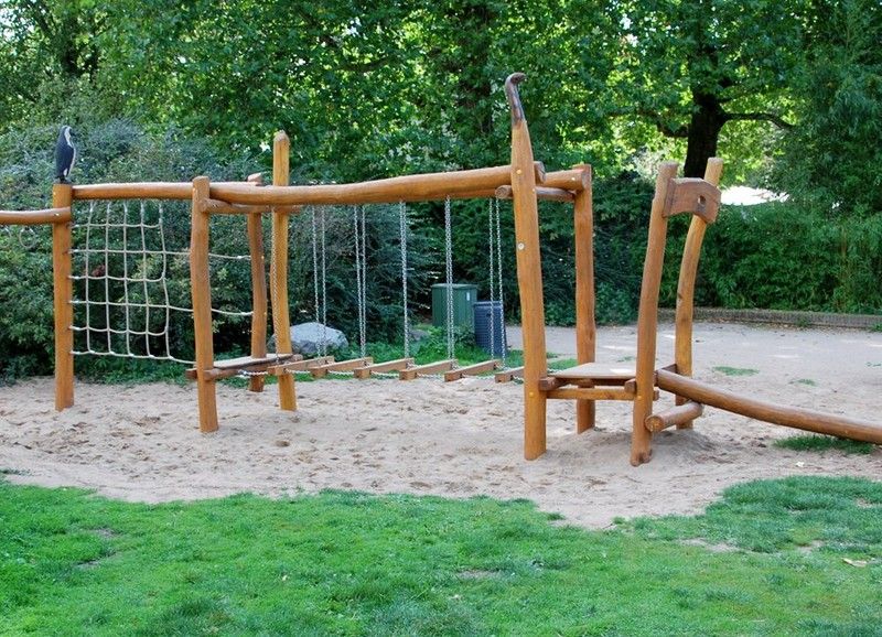 Joc d´escalada model BAIXA AMB MUR D´ESCALADA 13.03.02. Tallat a mà i fabricat amb fusta de robínia. Aquest joc d'escalada compleix les normes europees UNE-EN 1176 pel TÜV alemany - Product Service.