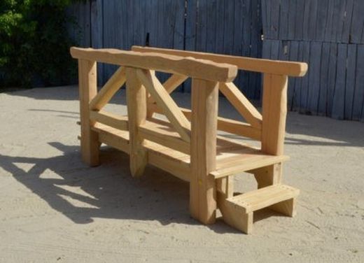 Joc d'escalada model PONT CORRENT 20/06. Tallat a mà i fabricat amb fusta de robínia. Aquest joc compleix les normes europees UNE-EN 1176 pel TÜV alemany - Product Service.