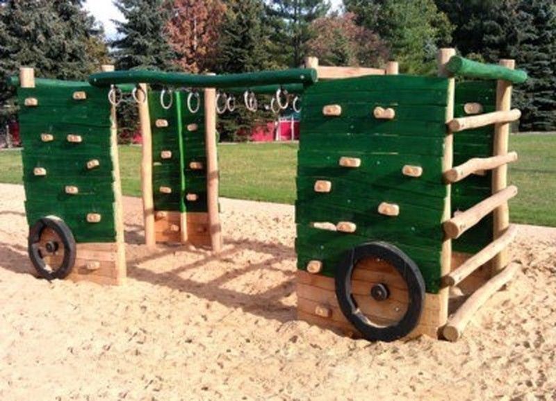 Joc d'escalada model REMOLC 13.15.02. Tallat a mà i fabricat amb fusta de robínia. Aquest joc compleix les normes europees UNE-EN 1176 pel TÜV alemany - Product Service.