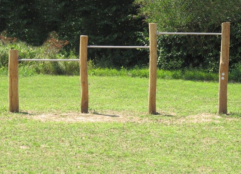 Joc d´esport 3 BARRES 22.08.03. Tallada a mà i fabricada amb fusta de robinia Aquest joc compleix amb les normes europees UNE-EN 1176 pel TÜV alemany - Product Service.
