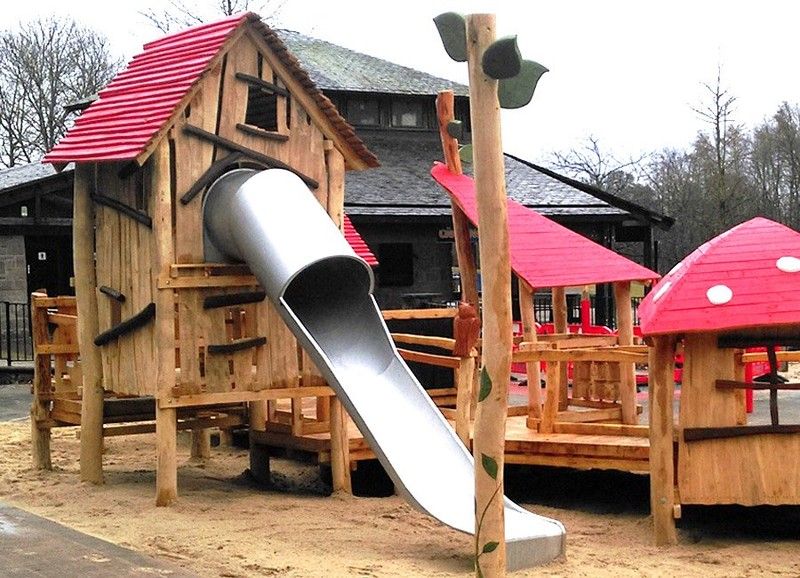 Joc infantil de fusta de Robinia Castell INCLUSIU DUNDEE 10.05.03., tallat a mà i fabricat amb fusta de robínia. Aquest castell de robinia és apte per als nens discapacitats i compleix les normes europees EN 1176 pel TÜV alemany - Product Service.