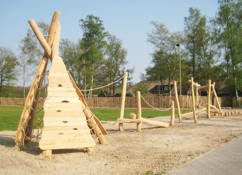 Joc infantil de fusta de robínia Indi CIRCUIT ESCALADA 13.19., tallat a mà i fabricat amb fusta de robínia. Aquest joc de robínia per a parcs infantils amb temàtica d'indis compleix les normes europees EN 1176 pel TÜV alemany - Product Service.