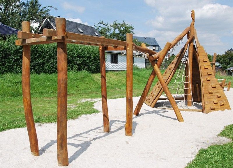 Joc infantil de fusta de robínia Indi CIRCUIT ESCALADA MÚLTIPLE 13.35.01., tallat a mà i fabricat amb fusta de robínia. Aquest joc de robínia per a parcs infantils amb temàtica d'indis compleix les normes europees EN 1176 pel TÜV alemany - Product Service.