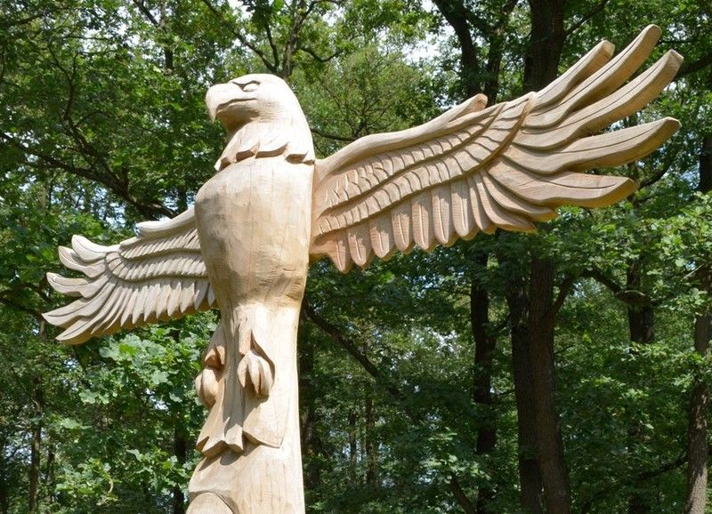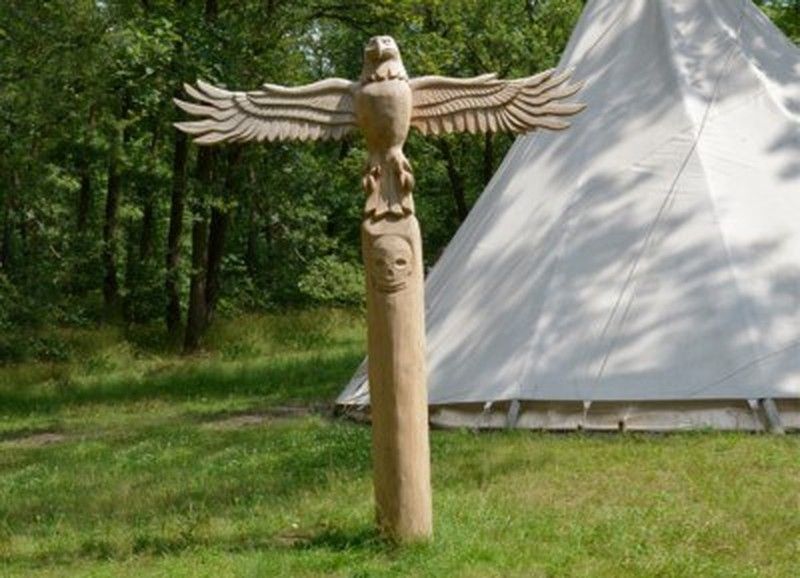 Joc infantil de fusta de robinia Indi TÓTEM ÀGUILA 33.04.03., tallat a mà i fabricat amb fusta de robinia. Aquest joc de robínia per a parcs infantils amb temàtica d'indis compleix les normes europees EN 1176 pel TÜV alemany - Product Service.