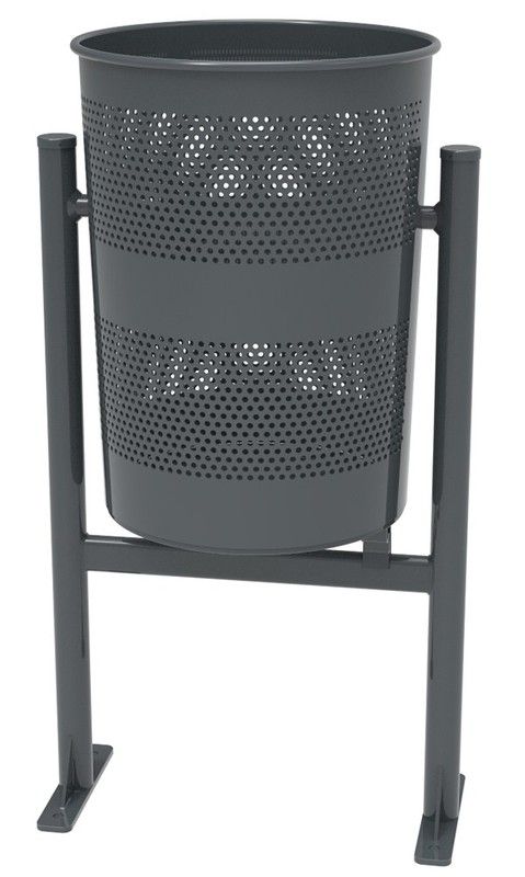 Paperera economica Model Barcelona C-23GE amb una capacitat de 60 litres. Una paperera abatible, fabricada de xapa perforada zincat electrolític de 1mm de gruix amb suport de tub metàl·lic de ø40 × 1,5 mm. Pintat epoxi al forn color Gris (RAL 7011). Gràcies a l'acabat, aquesta paperera pot resistir a la intempèrie sense cap mena de manteniment.