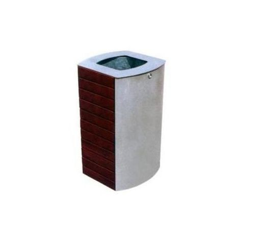 Paperera fabricada en acer amb fusta. Gràcies al tractat protector fungicida, incecticida i hidròfug de la fusta aquesta paperera pot resistir a la intempèrie sense cap mena de manteniment.Disponible en diverses opcions d'acabats com: ferro galvanitzat o pintat oxiró. Incorpora la cubeta interior extraïble i la tapa amb tancament.