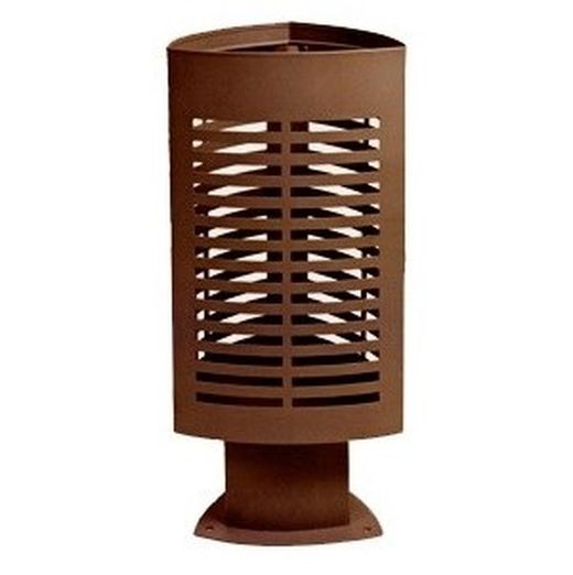 Paperera fabricada en acer galvanitzat, amb diferents acabats de pintura al forn: marró corten, oxiró negre i gris metal·litzat. Gràcies al tractat, aquesta paperera pot resistir a la intempèrie sense cap mena de manteniment.
