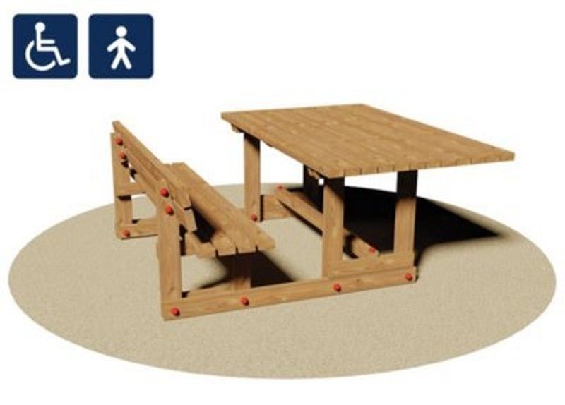 Taula de pícnic Archimede - 1012 pensat per a 3 nens i 2 nen amb mobilitat reduïda. Disposa d'una ubicació per a la cadira de rodes.