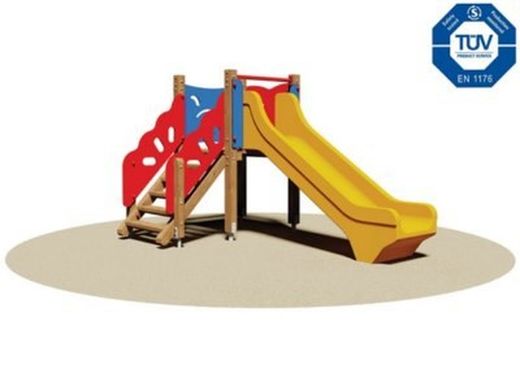Torreta multijoc MARTINA - 770 composta per 1 torreta, 1 escala i 1 tobogan. Aquest joc disposa de certificat de conformitat amb les normes europees EN 1176 pel TÜV alemany – Product Service.