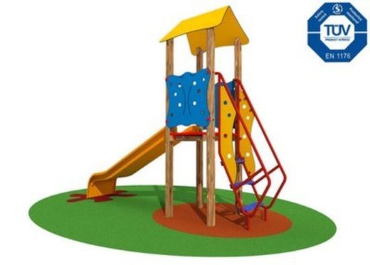 Torreta multijoc de fusta model Melisa - 1105. Certificat de conformitat amb les normes europees EN 1176 pel TÜV alemany - Product Service.
